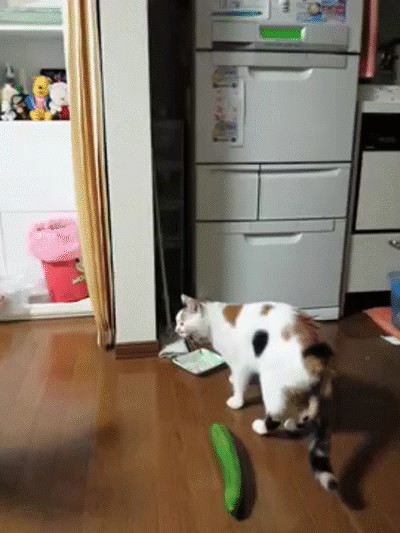 きゅうりにびっくりする猫