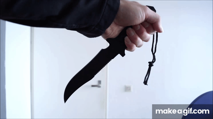 A hardened steel knife with rope, close up part 5