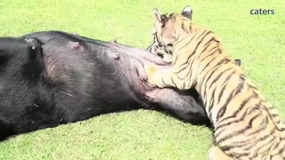 Adorable Abandoned Tiger Cub Adopted by Labrador