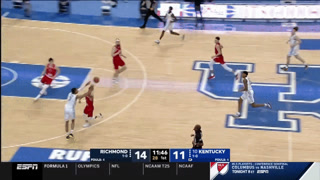 Boston off dribble, gets defender on hip, circus finish/shot, up/under? finger roll from the SEC logo, off glass