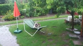 Bulldog Plays on Hammock in the Rain | Funny Bulldog