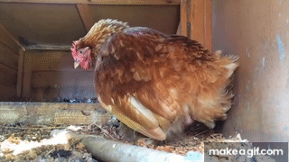 Chicken laying an egg