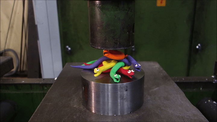 Crushing bowling ball and pin with hydraulic press