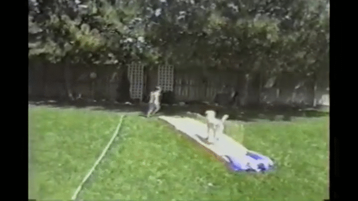 Dog on slip 'n slide