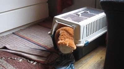 Dog Stuffs Teddy Bear Into Kennel