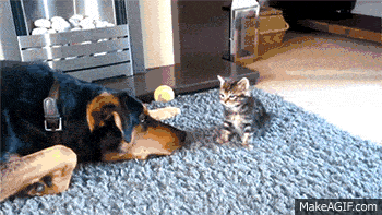 Dog teasing kitten