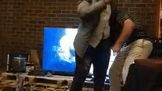 Drunk guy jumps through window