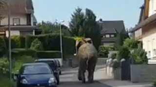 Elephant escapes circus and wanders around German town