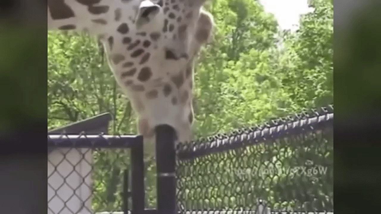 Giraffe Sucking On A Pole