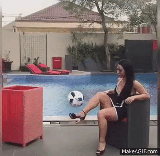 Girl handles Socce rball while in heel