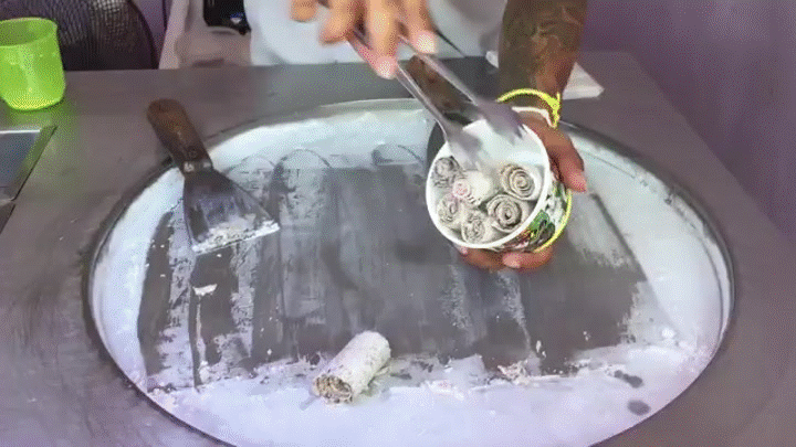 Handmade Instant Fried Ice Cream Rolls / Cookies, Brownie & Vanilla / Thailand / Ice Manias / 60fps
