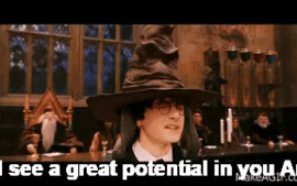 Harry Potter geting sorted into Gryffindor by Sorting Hat
