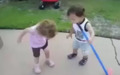 LIttle Boy Kisses Little Girl's Knee