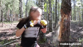 Little Girl Punches Down Tree Using Boxing Skills