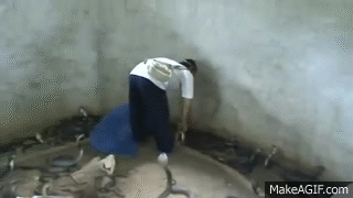 Man Selecting Cobras For Snake Show