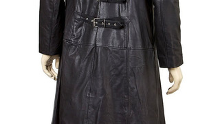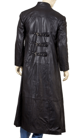 Mens Leather Goth Full Length Open Front Coat with Three Buckles ##########