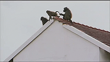Monkey falls off roof