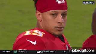 Patrick Mahomes blows a raspberry after throwing an interception