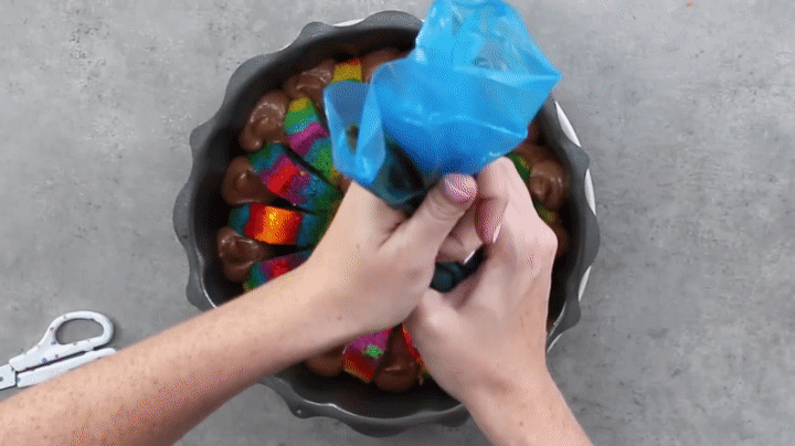piping bag rainbow bundt