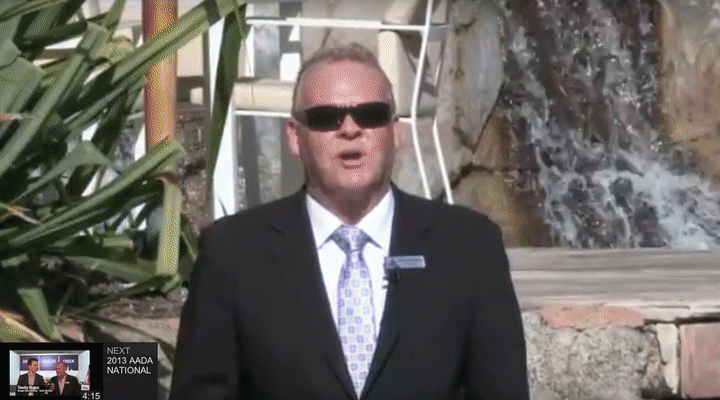 PRESENTER WADES THROUGH SWIMMING POOL