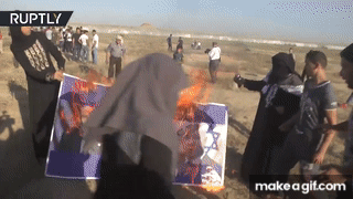 Protesters at Gaza border burn Israeli flags
