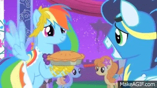 Rainbow Dash - Rainbow Dash rescues Soarin's big apple pie. (full scene)