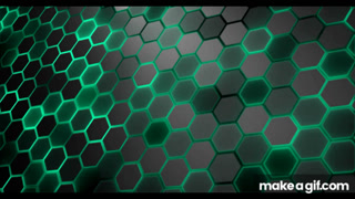 Shimmering gray green neon hexagons. Geometric pattern. Decorative abstract background, screensaver.