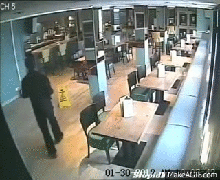 Slipping At The Wet Floor Sign