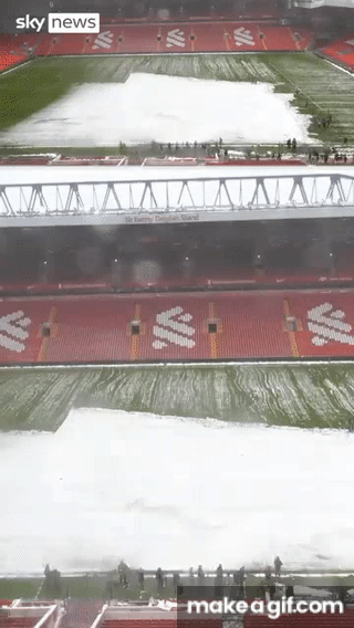 Snow cleared from Anfield pitch