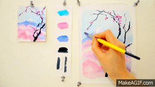 Step by step watercolor tutorial: Cherry Blossom and Mount Fuji