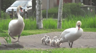 Swan Family Goes for a Walk