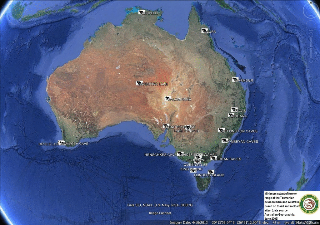 Tasmanian devil mainland range