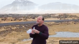 Trying to drink water in Iceland