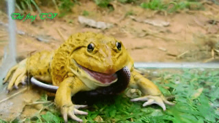 Unbelievable this kind of snake can survival from bullfrog by amazing skill, Live feeding