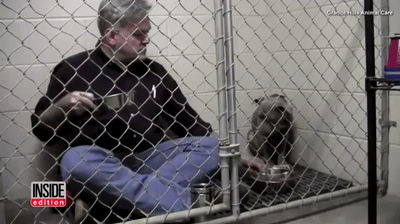 Vet Eats Breakfast While Sitting in Cage To Keep Rescued Pit Bull Company