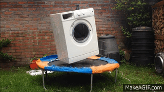 Washing machine brick bouncing on trampoline