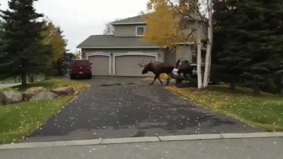 Watch Moose Fight in a Quiet Alaska Suburb