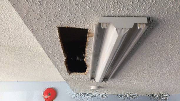 When plumber cuts a hole in the textured popcorn ceiling in Victoria, BC
