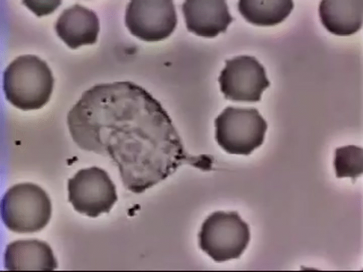 White Blood Cell Chases Bacteria