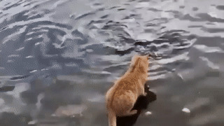 YOINK! The clever kitty gets the fishy